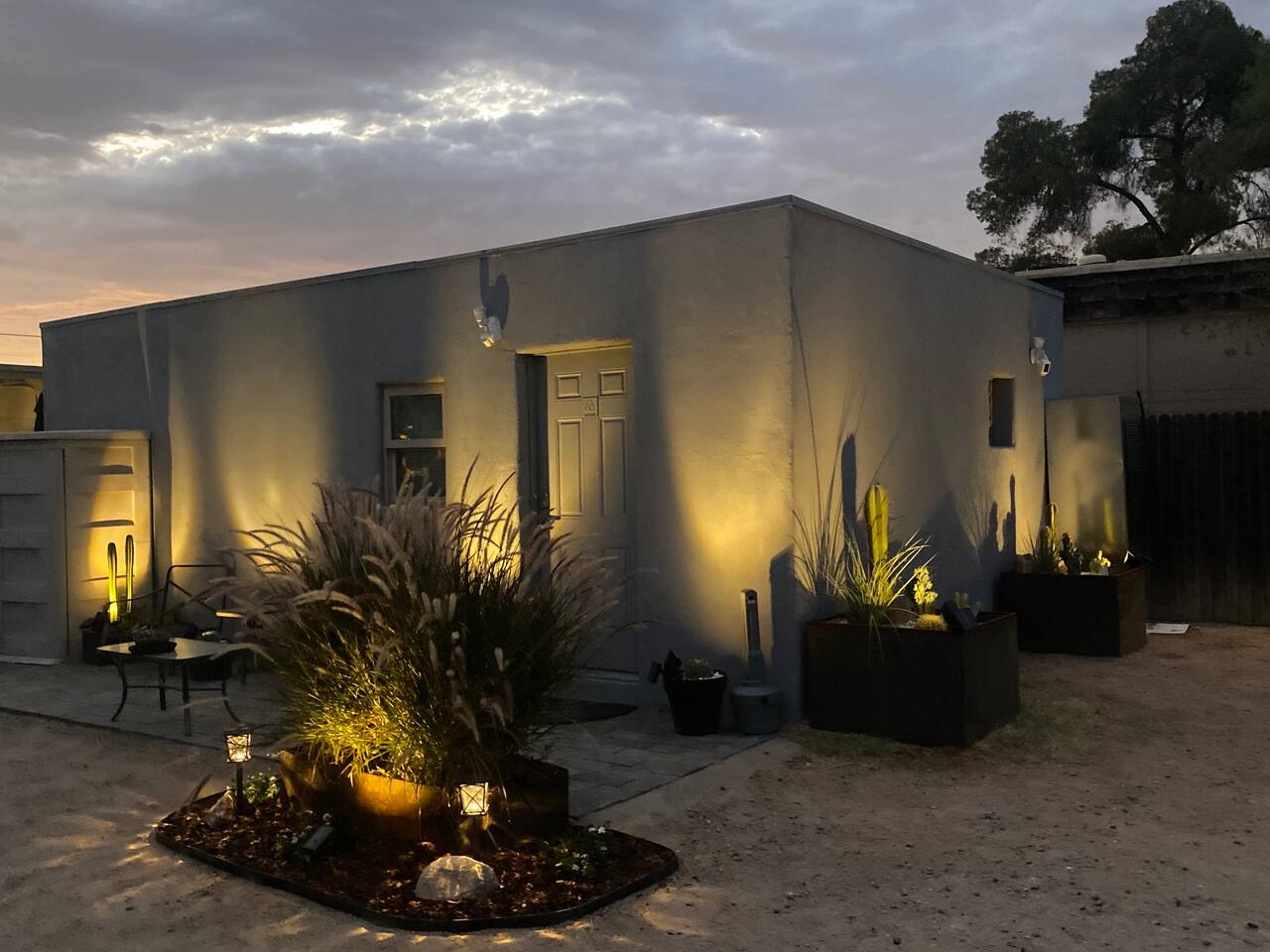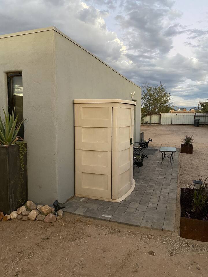 Welcome to Sonoran Saguaros Studio, located just 5 minutes to Downtown Tucson. The private studio is modern 500 ft with a 3/4 bath. The studio has a Kitchenette which includes everything you need for your stay comfortably, including a refrigerator/freezer, two-burner cook-top (no oven), microwave, toaster, utensils, pots, pans & Keurig. The property is on a quarter acre w/ private fencing around the perimeter; parking is available right next to the studio.