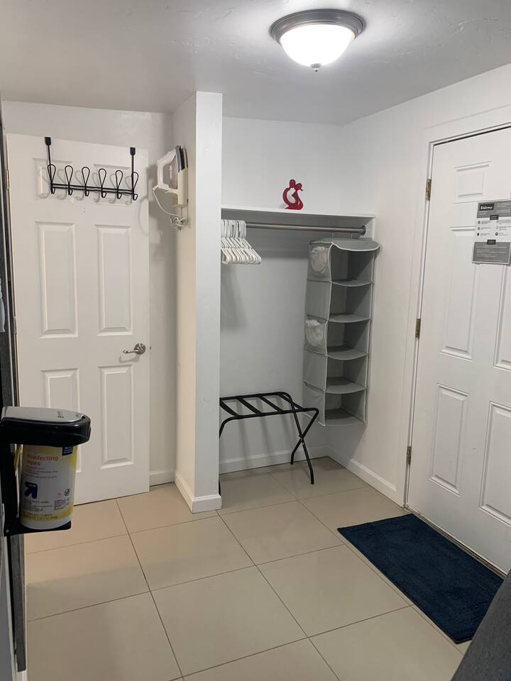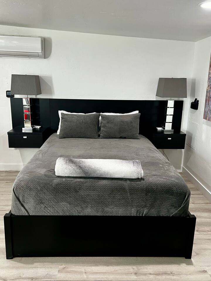 The queen size bed with a form mattress, with quality linens and comfortable bedding. Pull out sofa sleeper w/ extra bedding 1 guest can fit comfortable. – 3 guests will fit comfortable - Smart TV, Internet, Sound Bar What this place has to offer: • Essentials Towels, bed sheets, soap, toilet paper, and pillows • Air conditioning • Cleaning products • Cooking basics pots and pans, oil, salt and pepper • Dishes and silverware • Washer / Dryer (Located behind other house) (Shared area) • Hair dryer • TV • Wifi • Conditioner / Shampoo / Body Soap • Bed linens/ Extra pillows and blankets • Hangers • Iron / Board • Clothing storage • Keurig – coffee starter pack (creamer, sugar) Neighborhood: The property is located off 22nd / Park Ave on S Tyndall Ave. The property is in an industrial area with a mix of residential housing. The studio is 15 min from the Airport, 5 minutes from downtown and the U of A, Gem & Mineral Show, Reid Park, Zoo, and 10 mins to Randolph Golf Course and Corbett Field. A quick 5 min to I-10 and 7 min to I-19 This section of Tucson is an older area; the neighbors have lived in this area for 25 + years. The neighborhood is safe, good for your Tucson working middle class. The area is not your upper class; this is your typical working-class area and there are a lot of businesses in the area. The studio is in a gated secure area (w/ parking right next to your studio) (you will have to open / close the front gate manually) and another house is located on the property w/ a tenant.