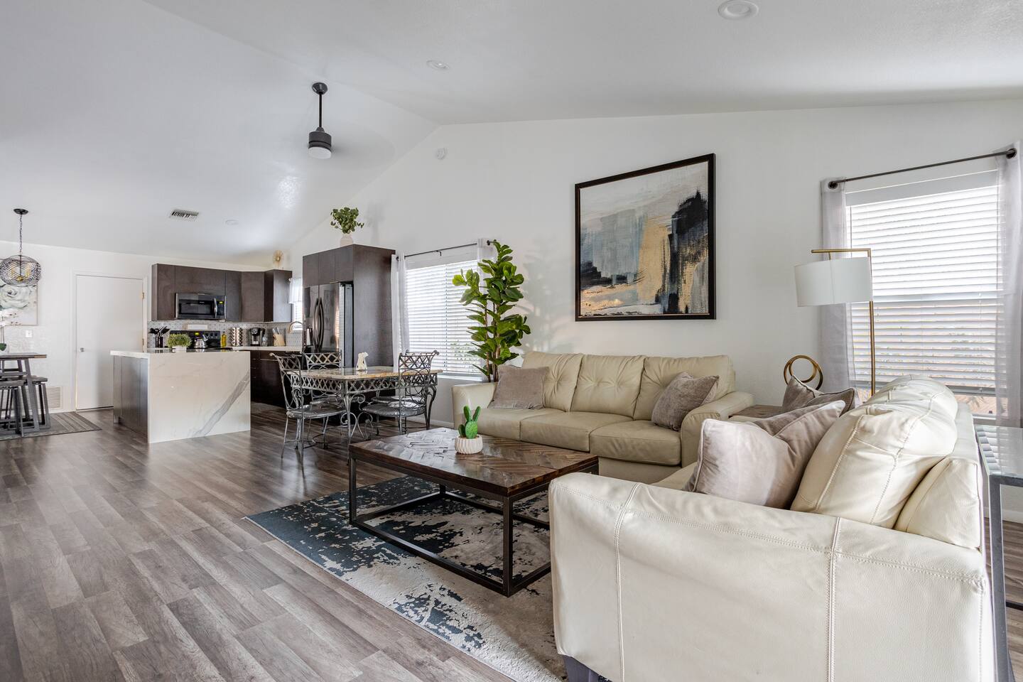 • Quiet hours 10pm to 8am • NO – motorhome, truck/trailer, box truck are NOT allowed on property, HOA has a strict NO street parking • No pets, parties/events, or unauthorized guests, sleeps 6 max including adults/Kids, $100 fee if you have additional guest more than 6 guests. • All types of smoking are strictly prohibited inside the home including vaping and e-cigarettes. We charge a $300 fee PLUS the entire cost of deep cleaning and restoring the property to its smoke-free condition. • Home has 2 car garage with an extra parking slip; garage is on the smaller side and will not be big enough for an extra-long bed truck. Will have to park on extra parking slip in front of home. • The house next door is a vacation rental available to rent for larger groups or multiply families. Check out Dos Sonoran Casitas